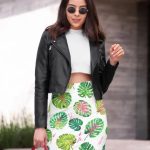 Look great in all-over printed, body-hugging pencil style skirt with elastic waistband.